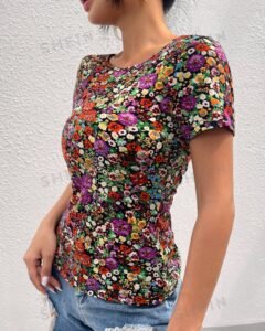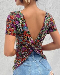 Camiseta bustier con estampado floral de hombros descubiertos rojo