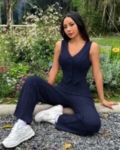 camiseta sin mangas de cuello redondo y pantalones rectos de tirantes huecos