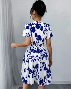 estido elegante de mujer con cuello cuadrado, estampado floral