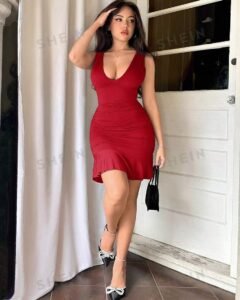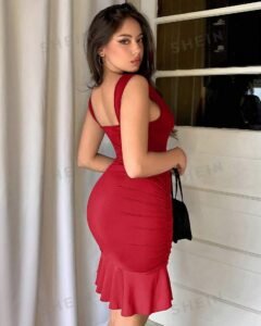 Vestido mini apretado con costuras fruncida