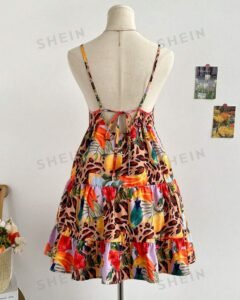 Vestido de verano tropical informal para mujer con estampado integral de leopardo