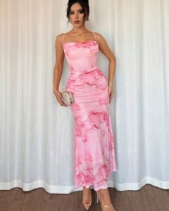 Vestido largo de tirantes tipo línea A con estampado de girasol