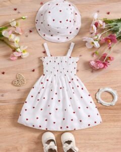 Vestido sin mangas de impresión de corazones y diadema de lazo