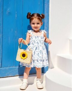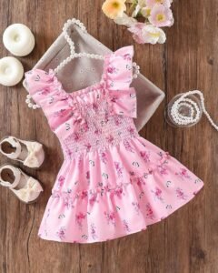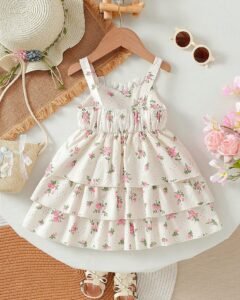 Vestido hecho a mano para bebé niña con diseño de flores decorativas
