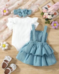 vestido de bebé overol + blusa de manga larga adorable y elegante