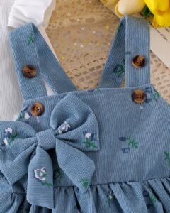 camiseta de manga larga + pantalones con tirantes con bordado y diadema con lazo