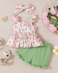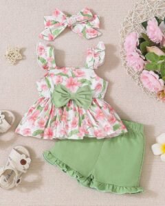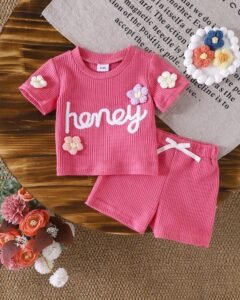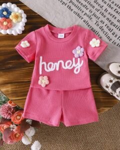 Top de manga corta y pantalones cortos casuales y lindos para bebé niña
