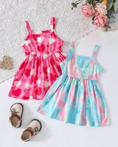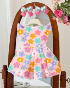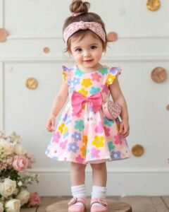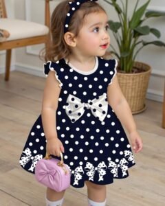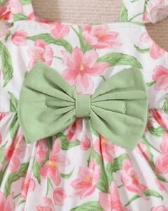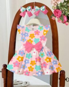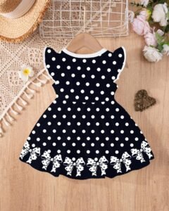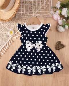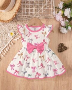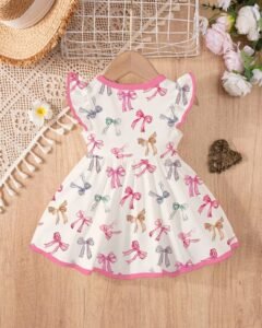 Vestido casual de niña pequeña con manga corta, estampado de lazo