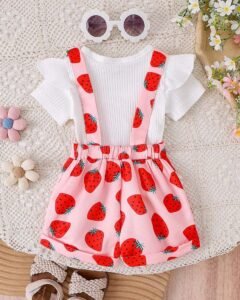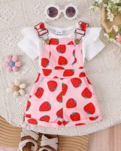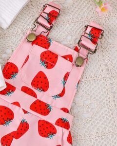 Blusa con bordado de fresa y pantalones cortos con lunares