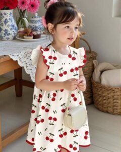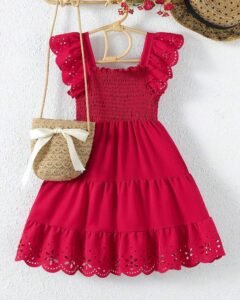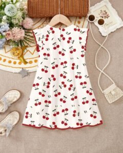 Vestido de verano sencillo con volantes en el dobladillo con estampados de corazones