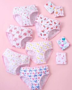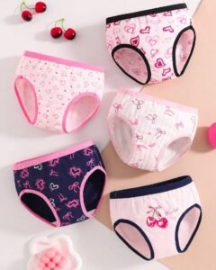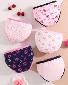 5 bragas de algodón para niñas con estampado de corazones y lazos