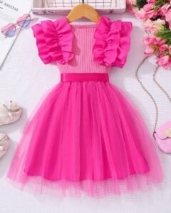 Vestido con abertura láser ribete con fruncido bajo a capas