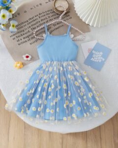 Vestido camisero casual de estampado floral con bordado y lazo a contraste