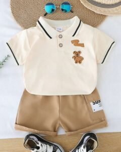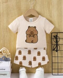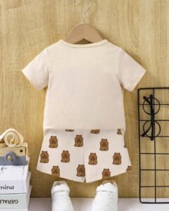 Conjunto de pantalones cortos y camisa de manga corta con estampado de oso