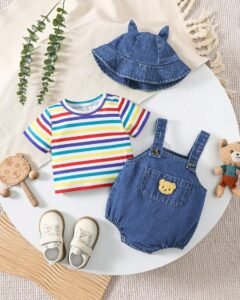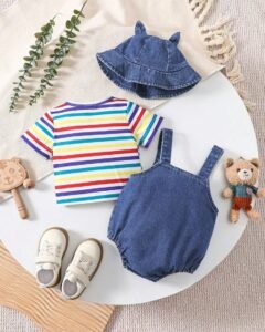 Conjunto de ropa linda a rayas para bebés recién nacidos niños