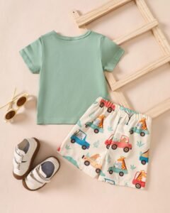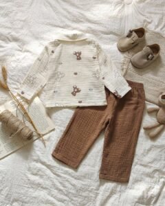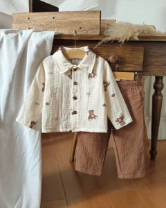 Conjunto básico para recién nacido niño, parte superior de tela texturizada