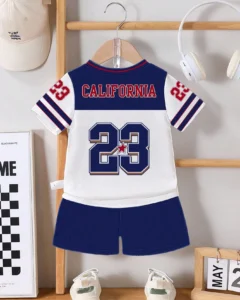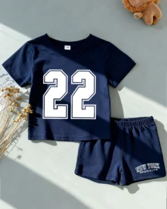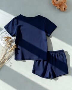 Camiseta de manga corta con estampado de oso y rayas + pantalones cortos azul marino