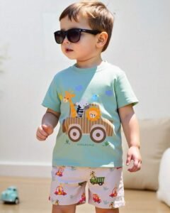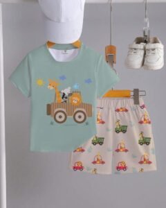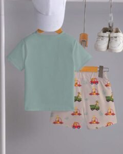Camiseta y Pantalones Cortos Casuales con Estampado de Coches y Animales
