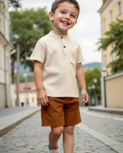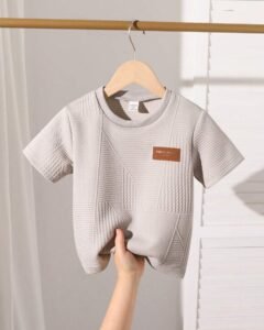 Camiseta de niño de manga corta y cuello redondo de color liso