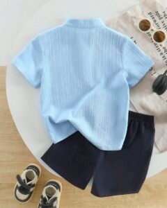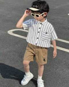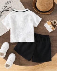 camisa casual a rayas y pantalones cortos sueltos bordados