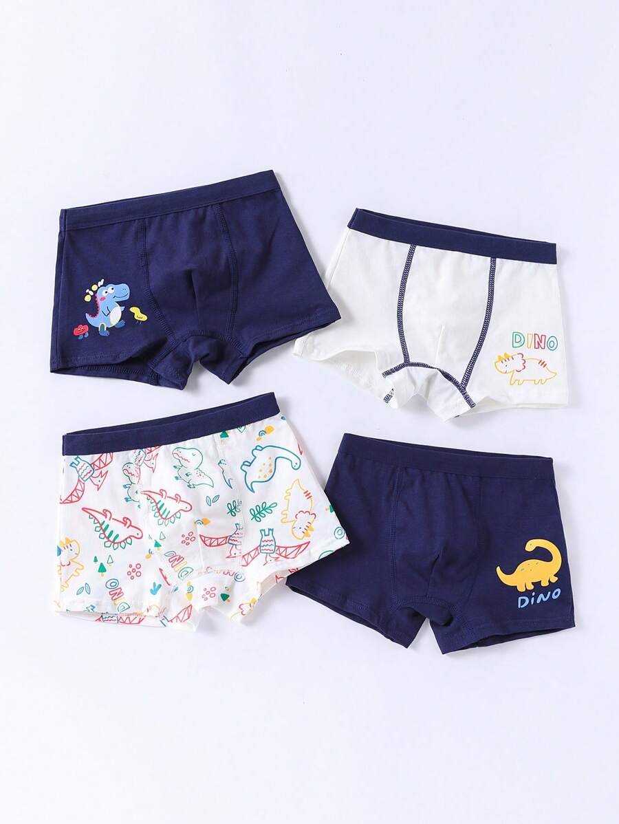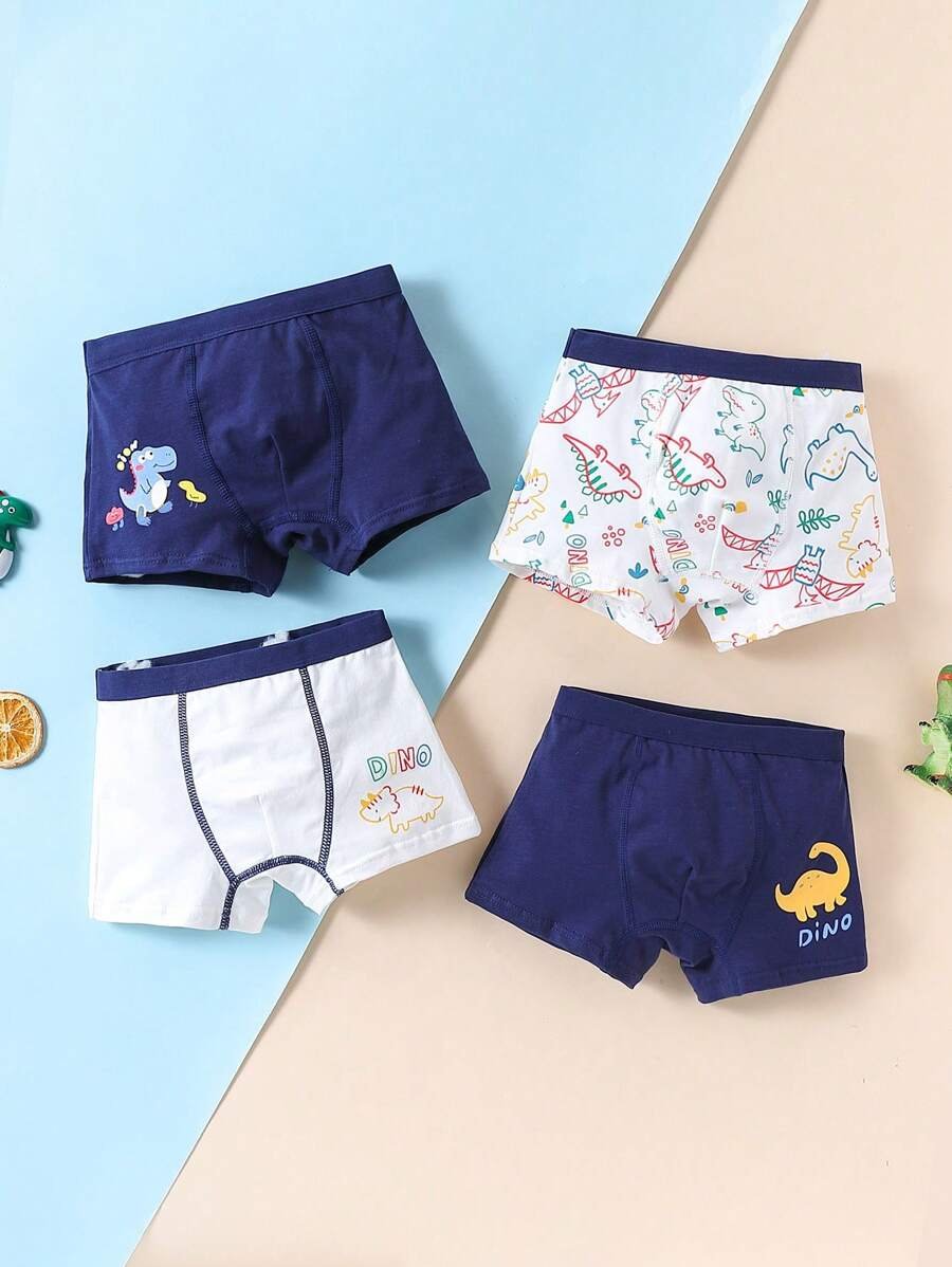 4 piezas Bóxer con estampado de dinosaurio de dibujos animados