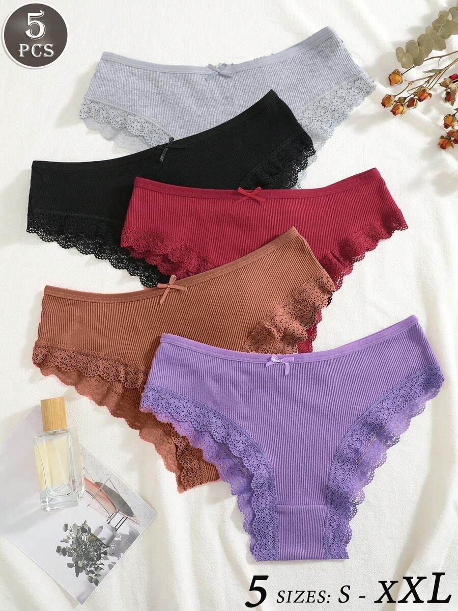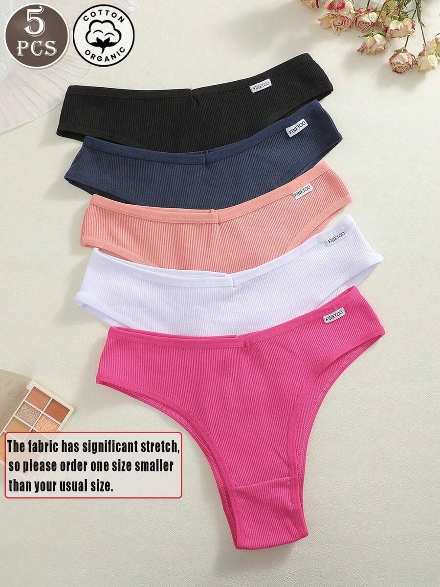 4 piezas Ropa interior de algodón de unicolor y cintura baja