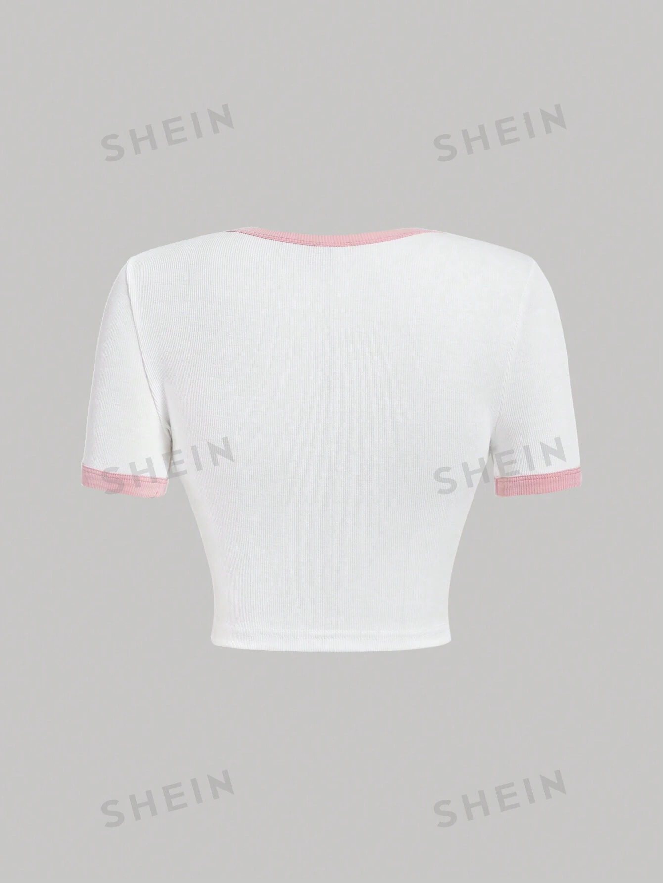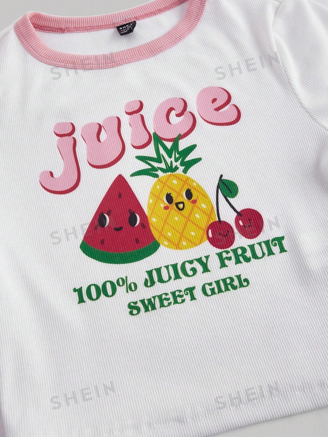 Camiseta de verano de bloques de color con estampado de frutas blancas