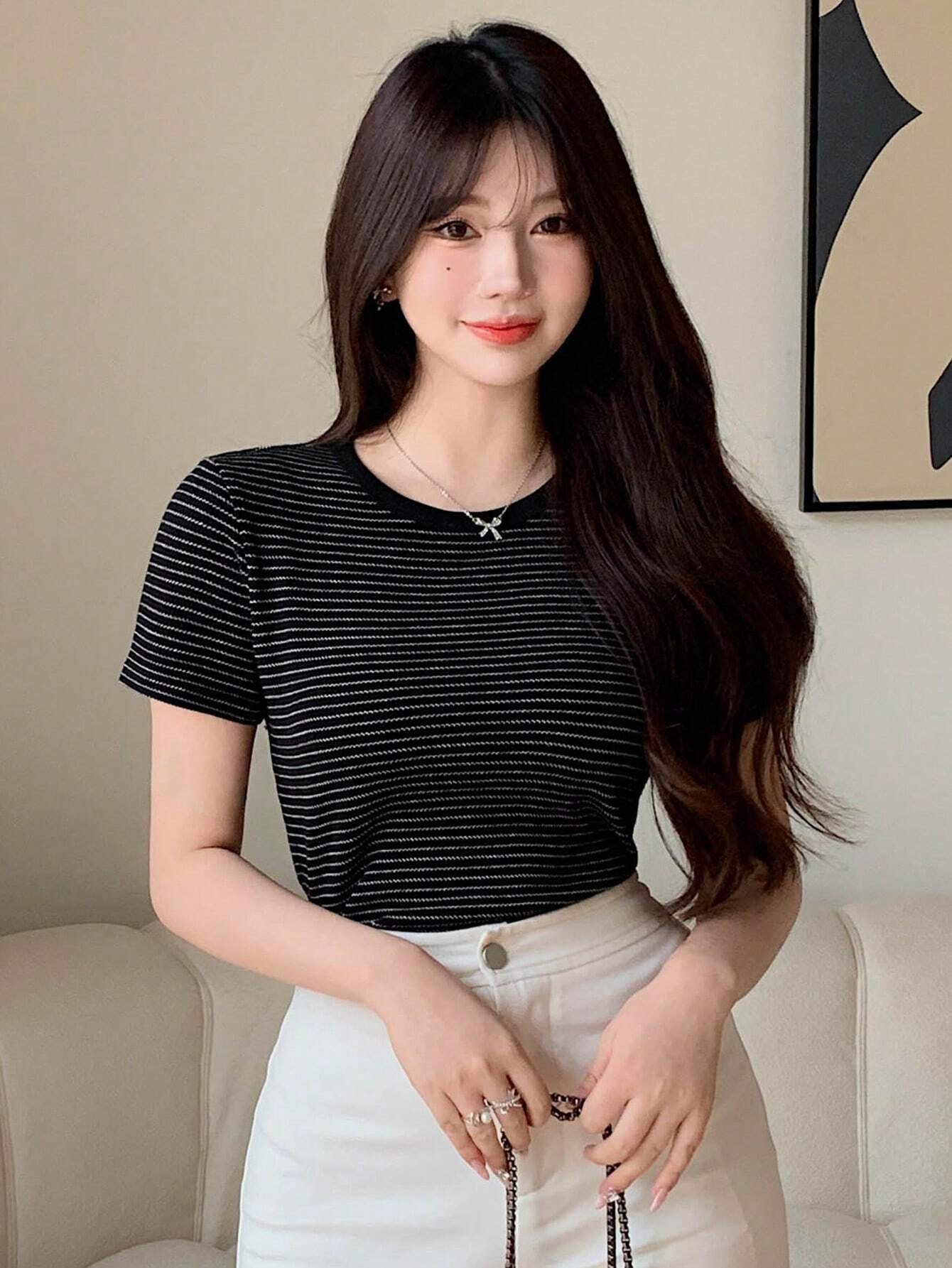 amiseta elegante de mujer con rayas de verano
