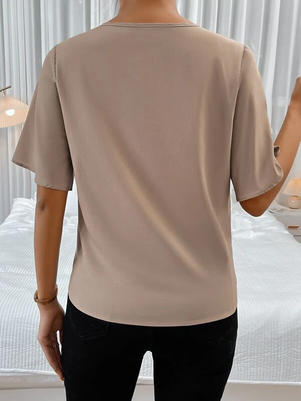 Anillo unicolor detalle de cuello V Blusa