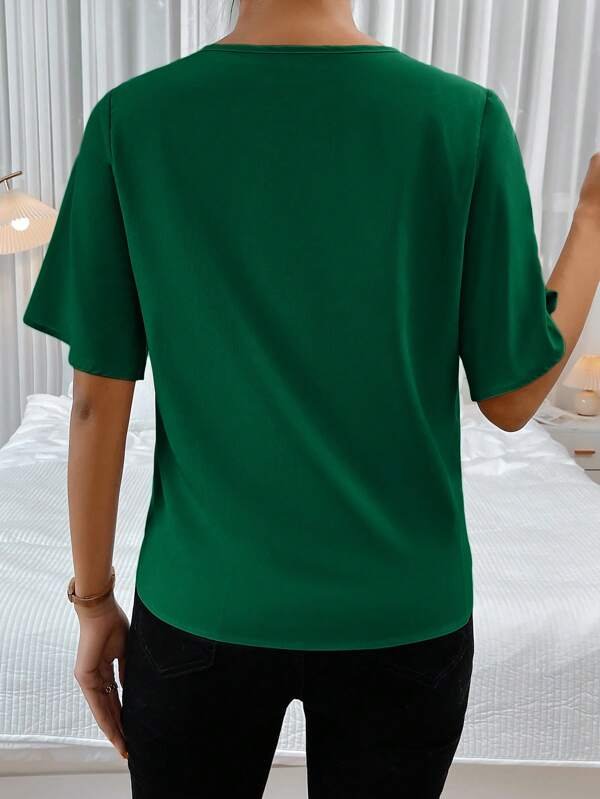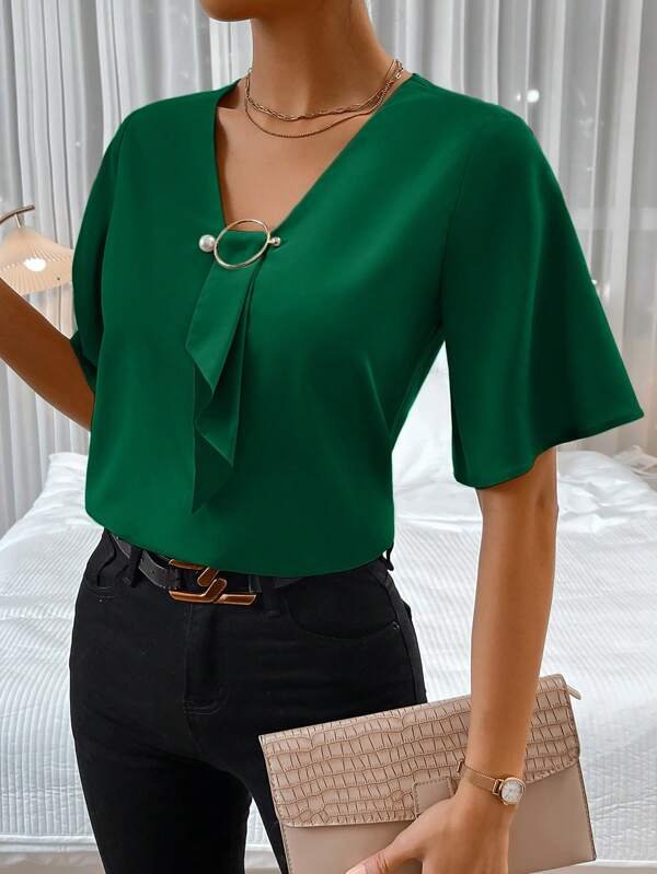 Anillo unicolor vinculado ribete con fruncido Blusa