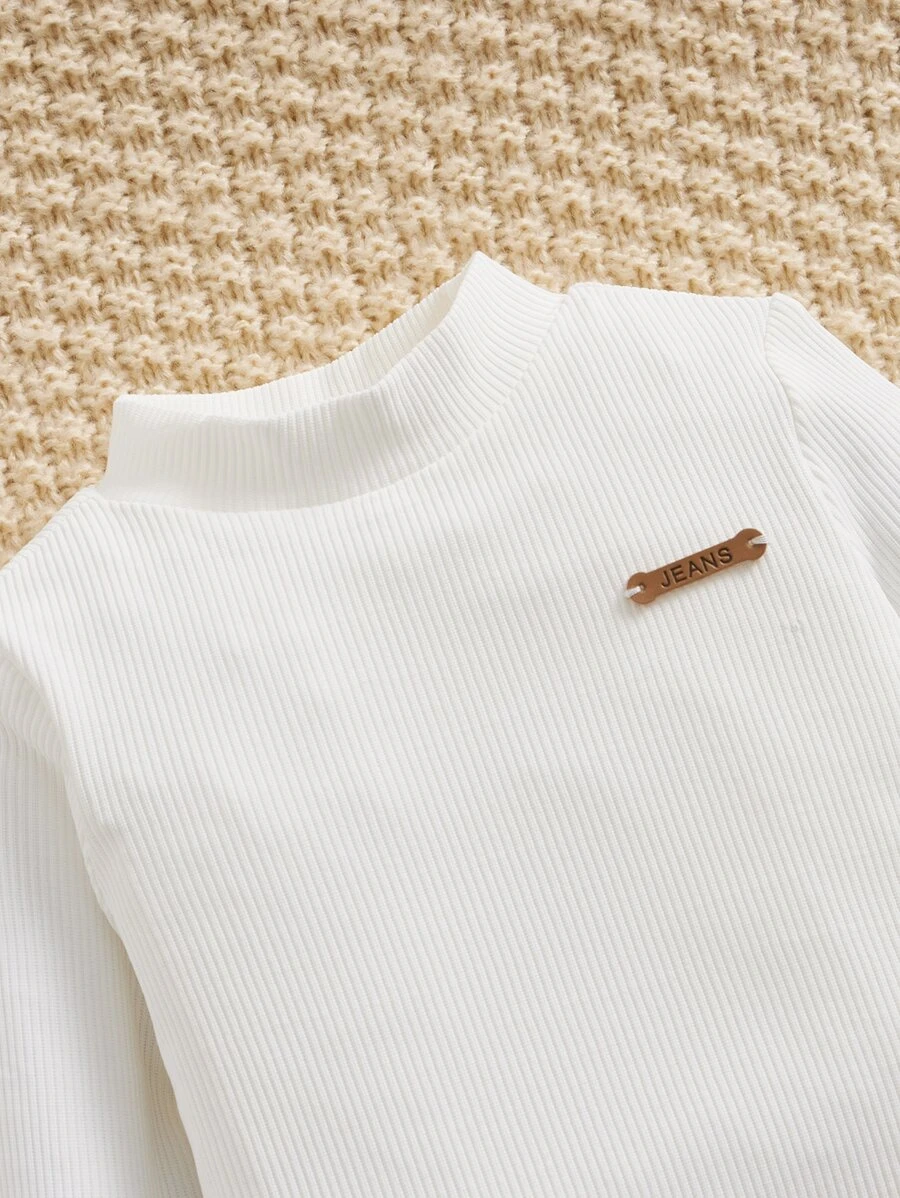 Beb? Camiseta con dise?o de parche de letra de cuello alto