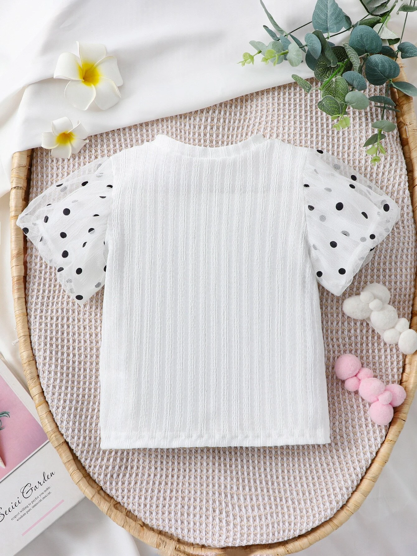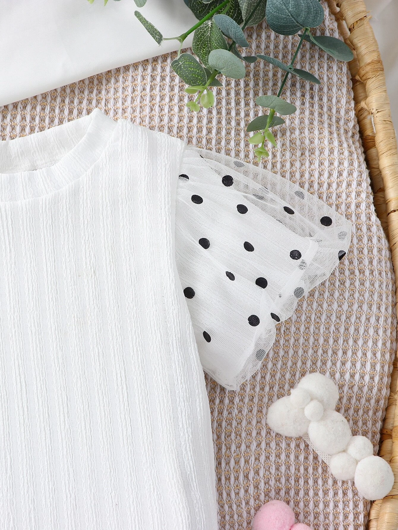 Beb? Camiseta con estampado de lunares de malla en contraste de manga farol