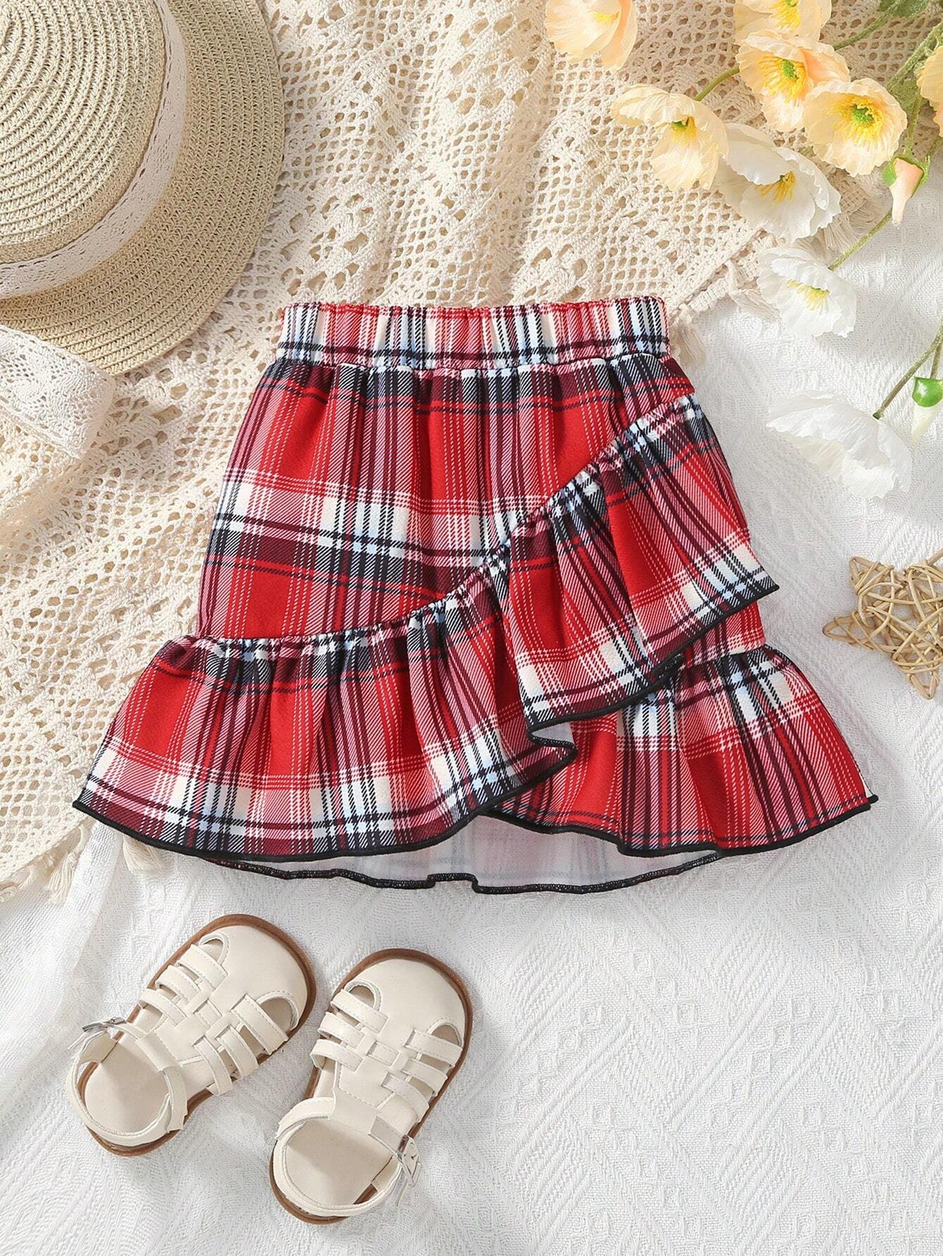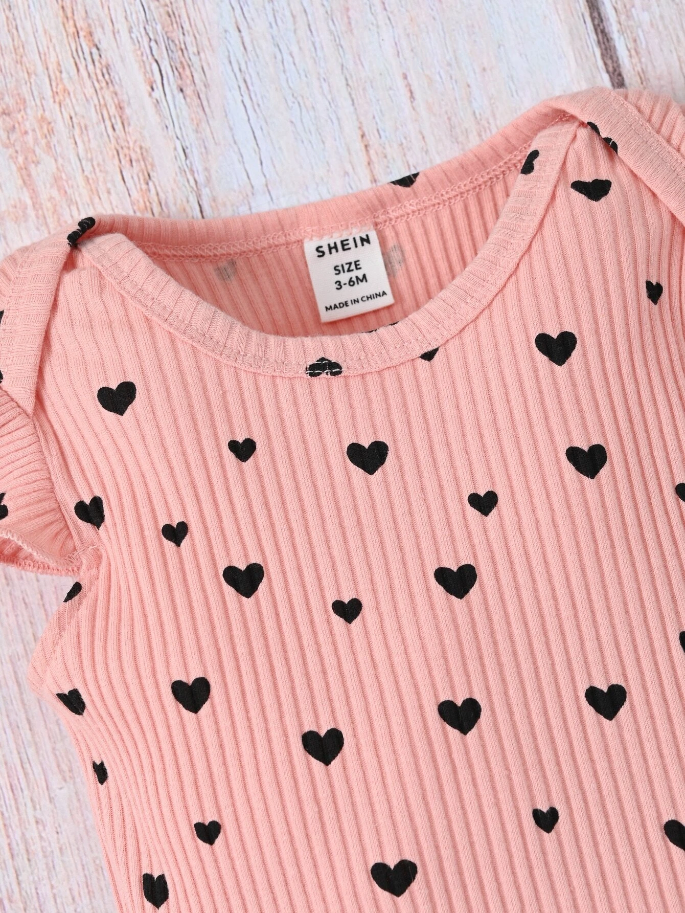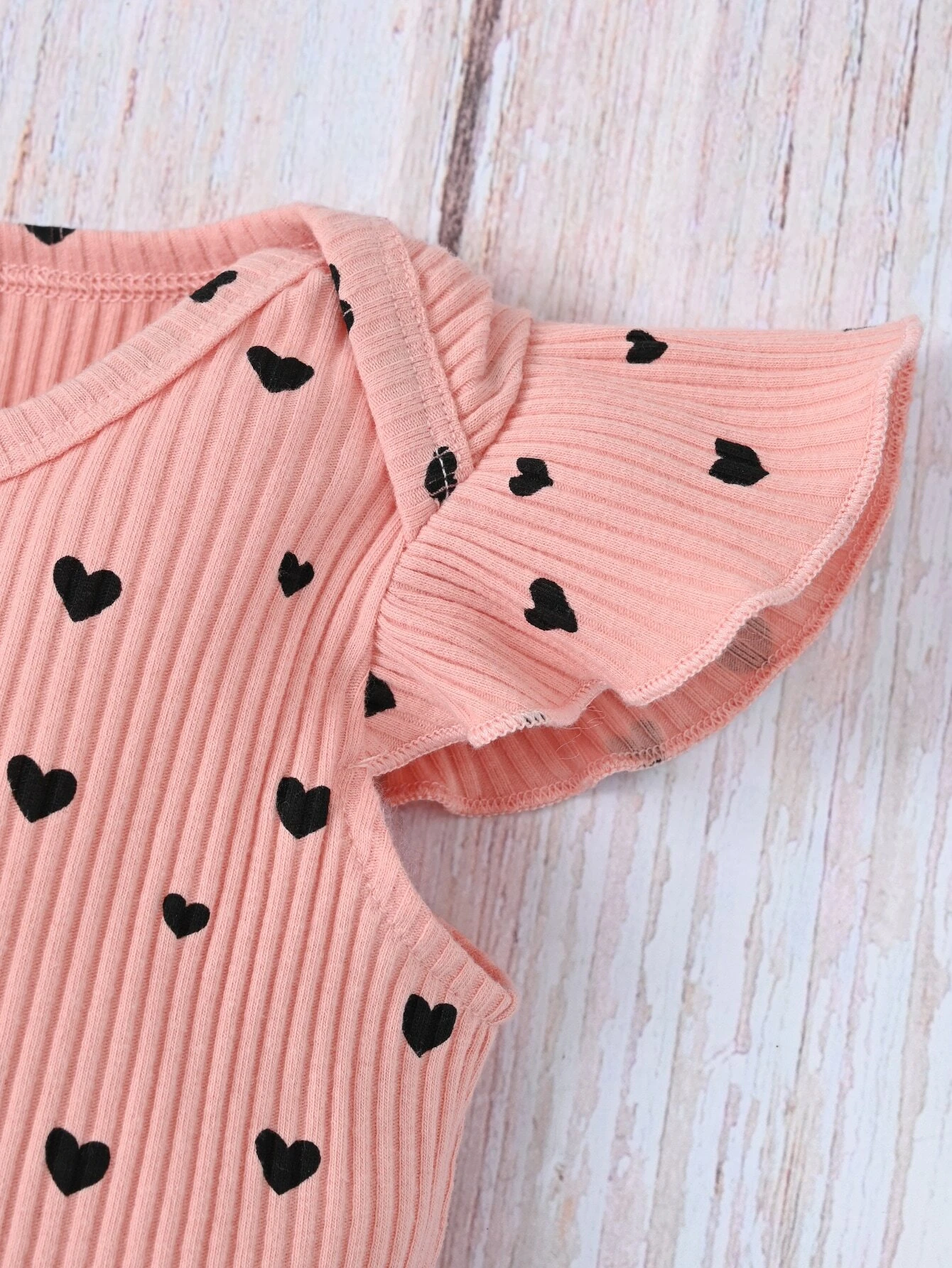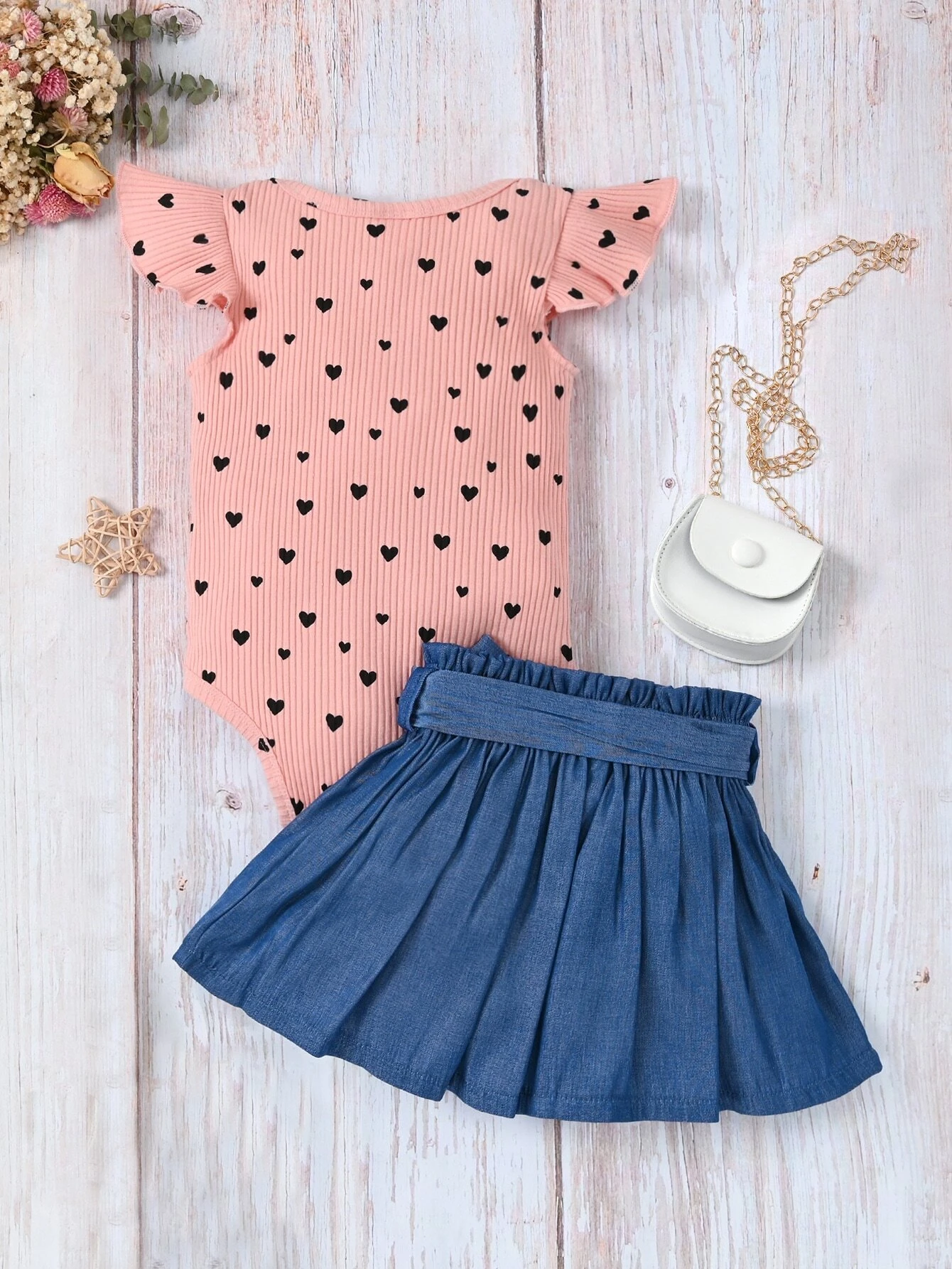 Beb? con estampado de coraz?n ribete con fruncido Body & de cintura con volante con cintur?n Falda