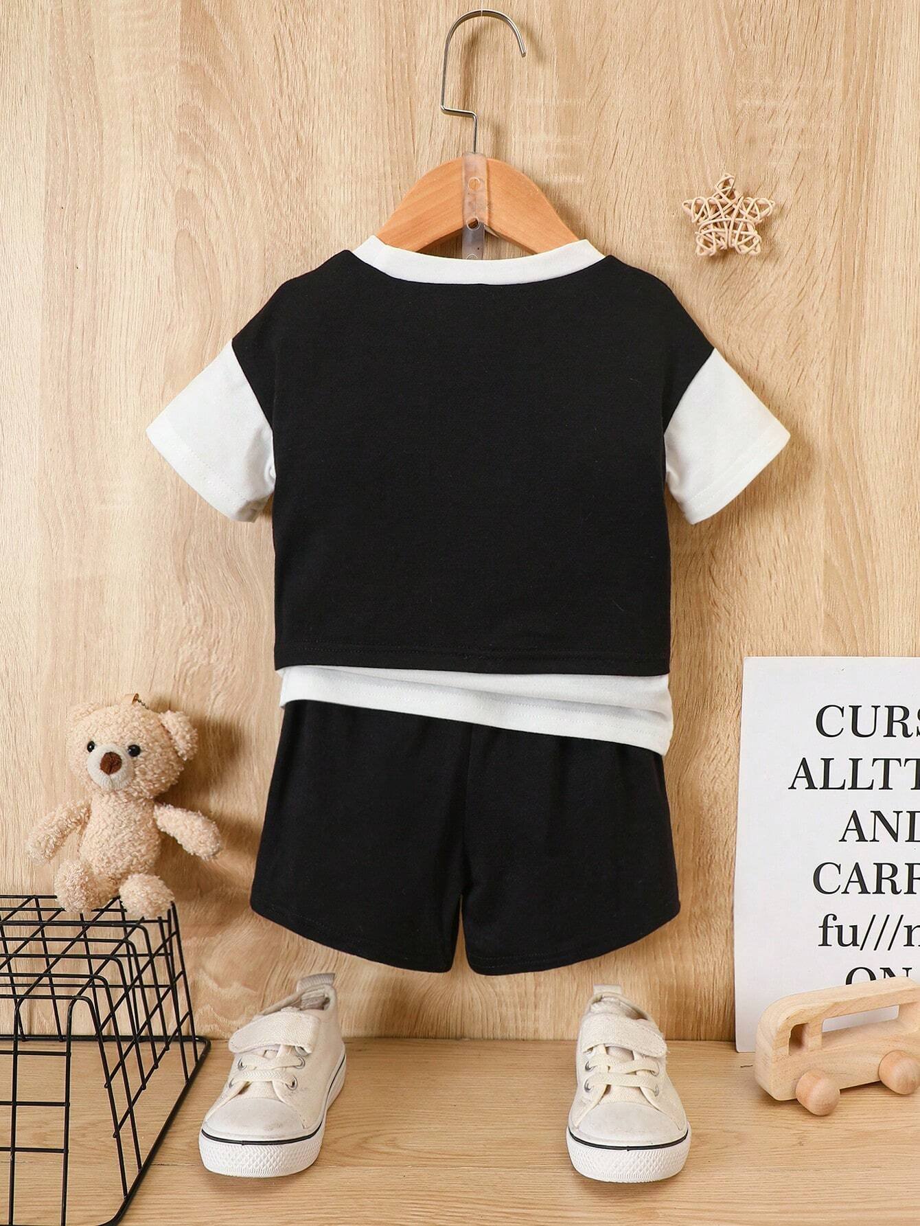 Beb? de color combinado con bolsillo con solapa Camiseta 2 en 1 & Shorts