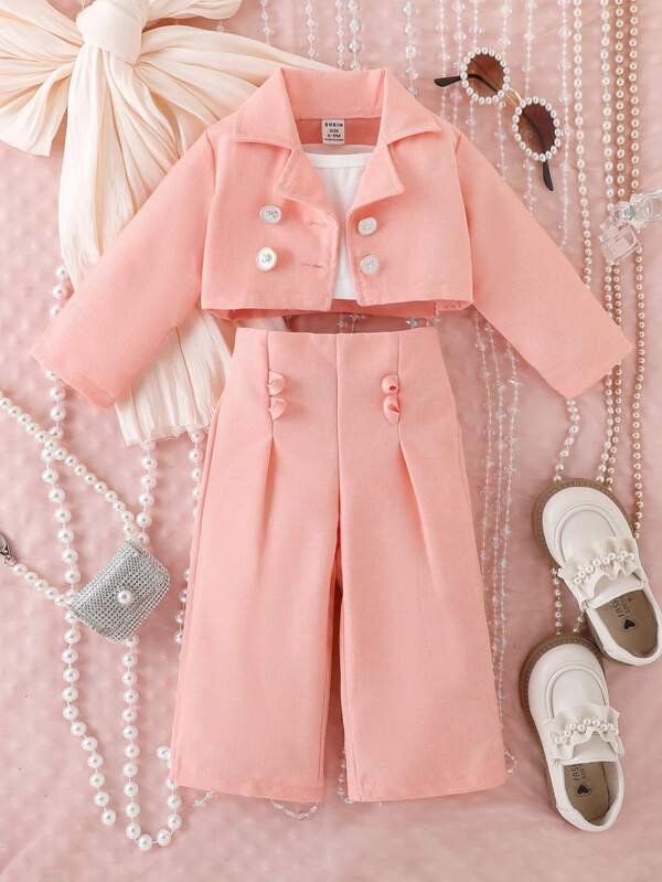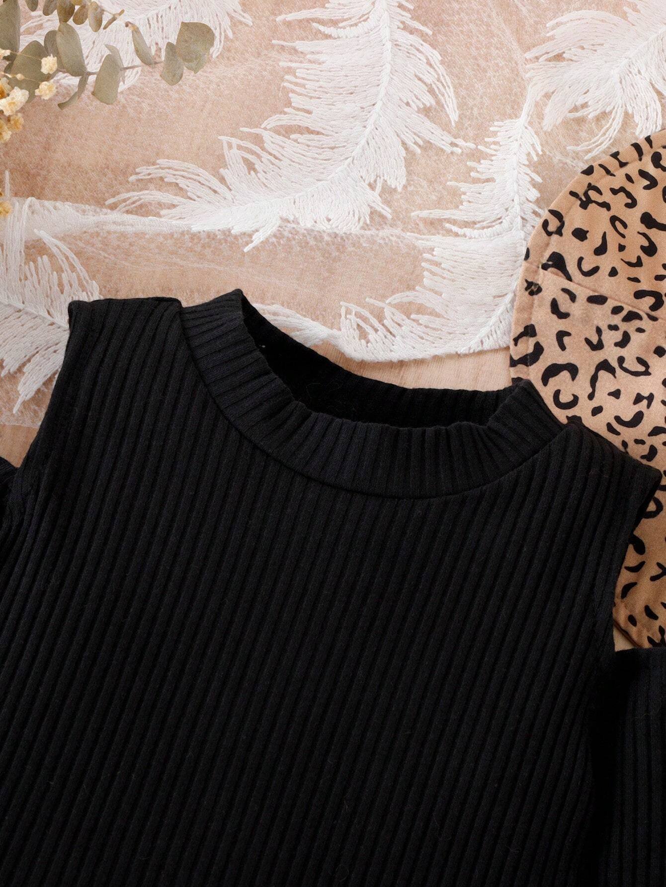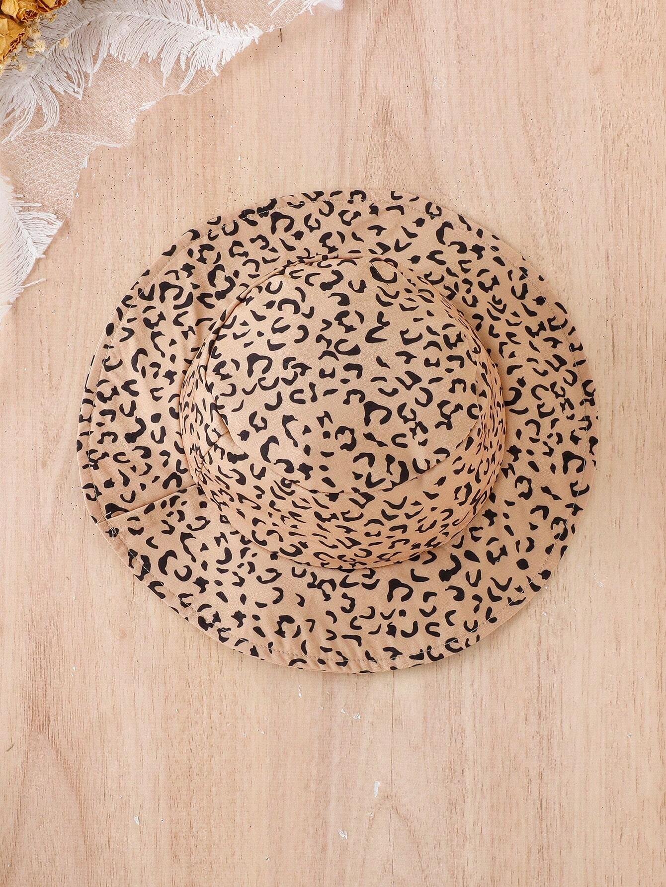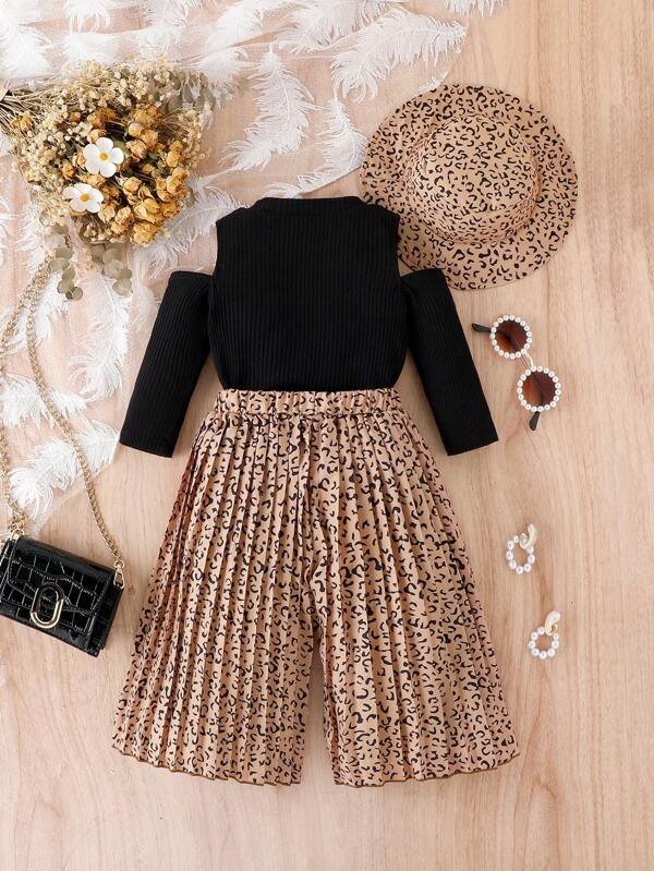 Beb? ni?a de hombros descubiertos Camiseta & con estampado de leopardo Falda fruncido & Sombrero