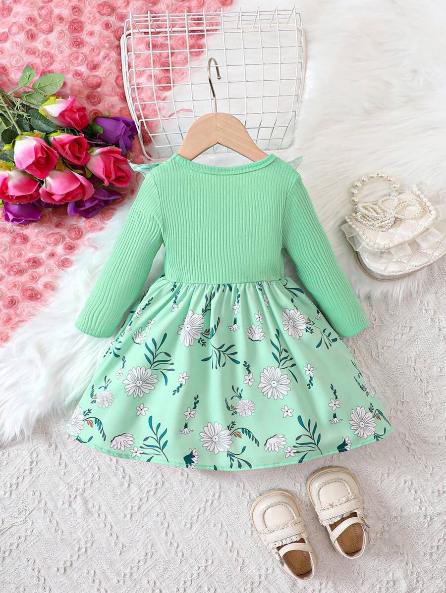 Beb? ni?a Vestido con estampado floral ribete con fruncido con lazo delantero