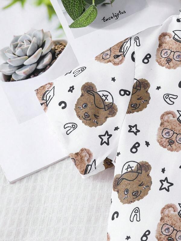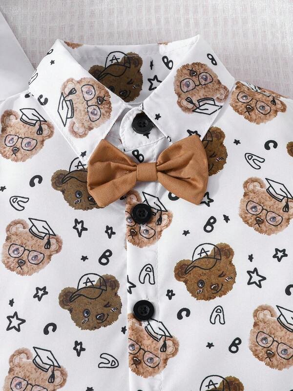 Beb? ni?o Camisa con estampado de oso con lazo delantero & Shorts
