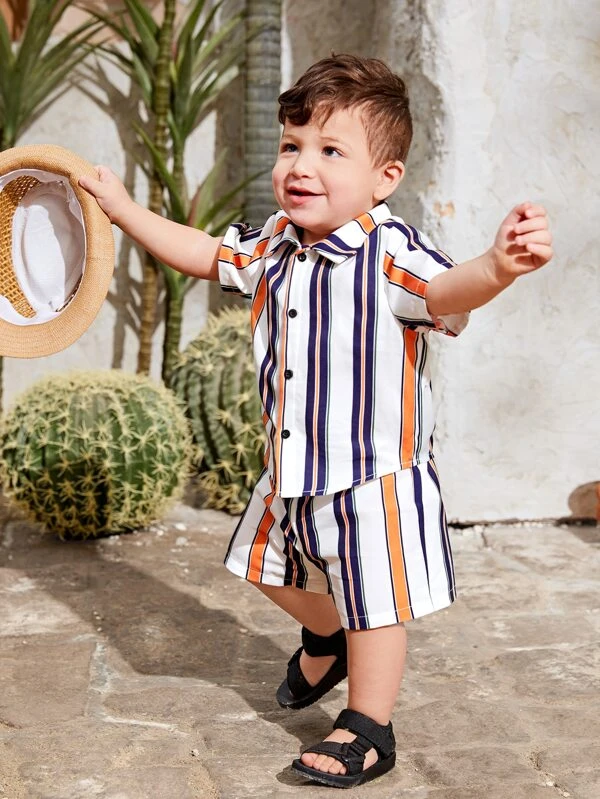 Beb? ni?o Camisa de rayas verticales & Shorts