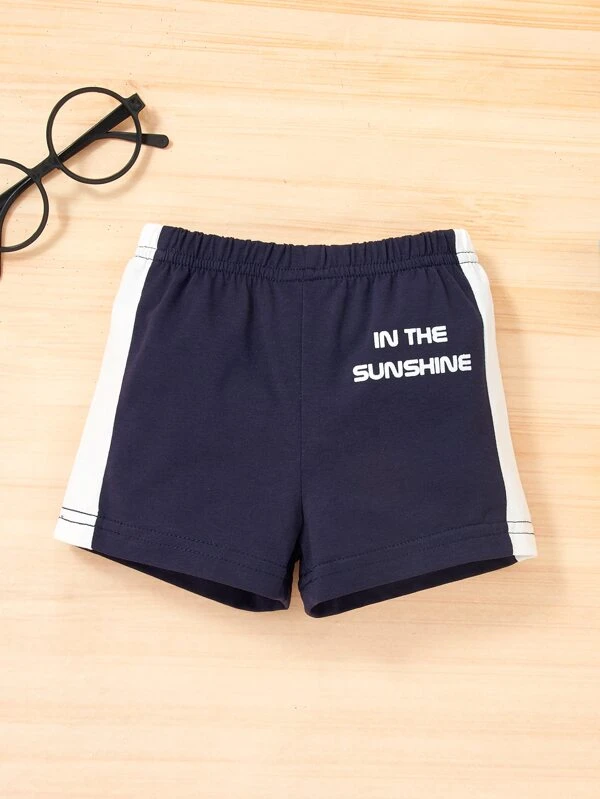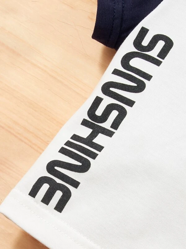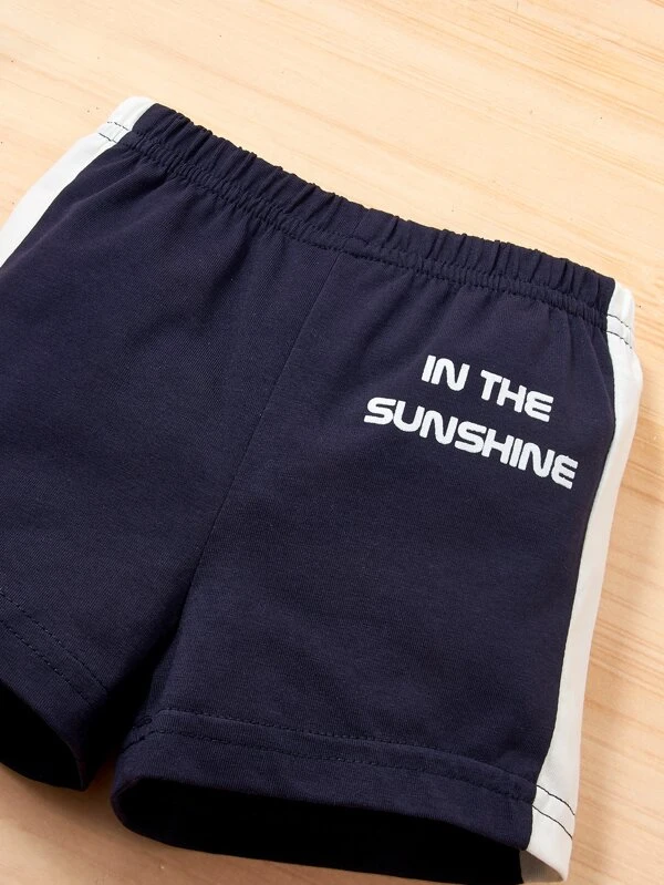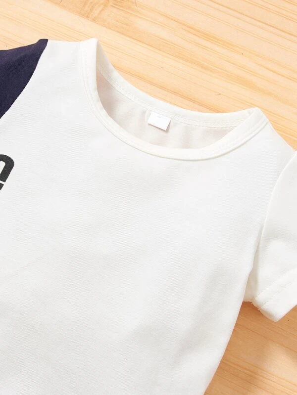 Beb? ni?o Camiseta con estampado de letra de color combinado & Shorts deportivos