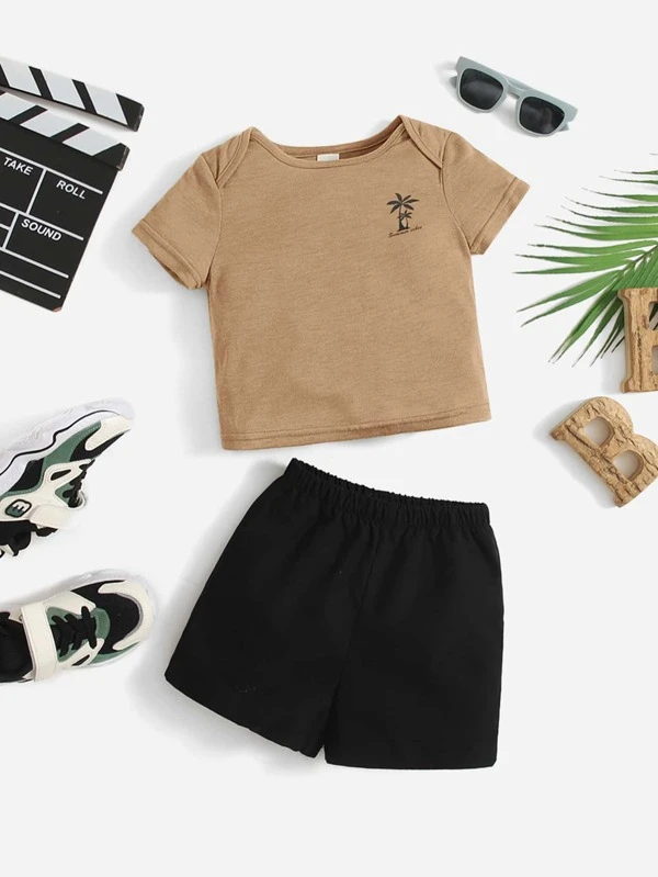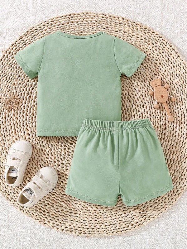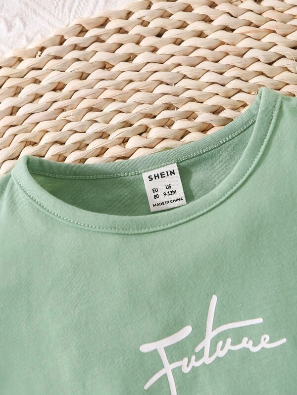 Beb? ni?o Camiseta con estampado de letra & Shorts detalle con costura