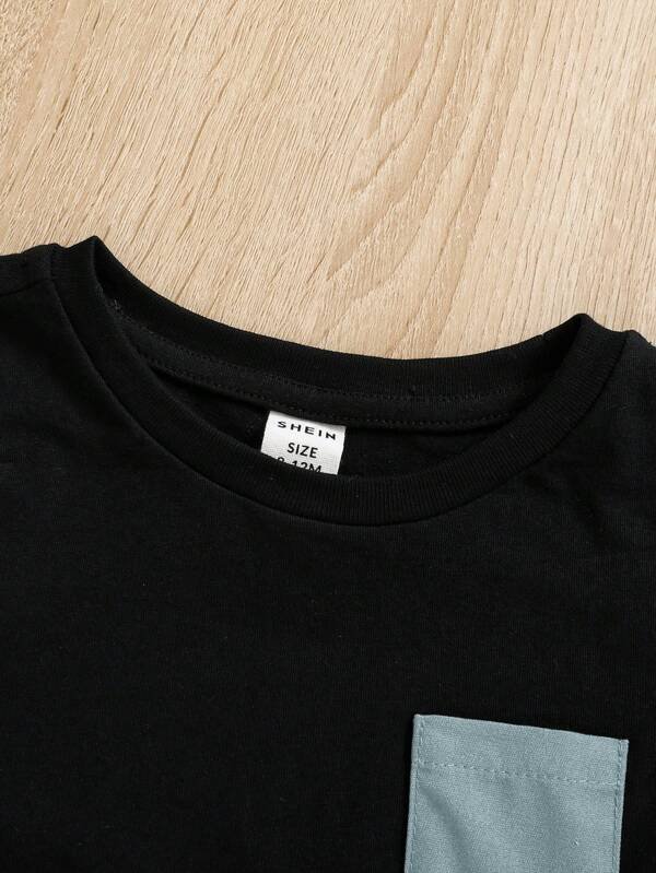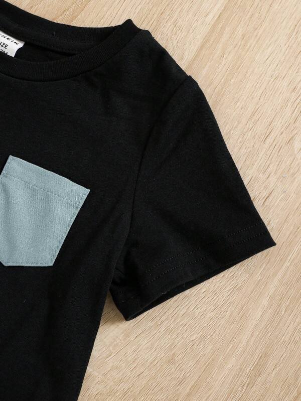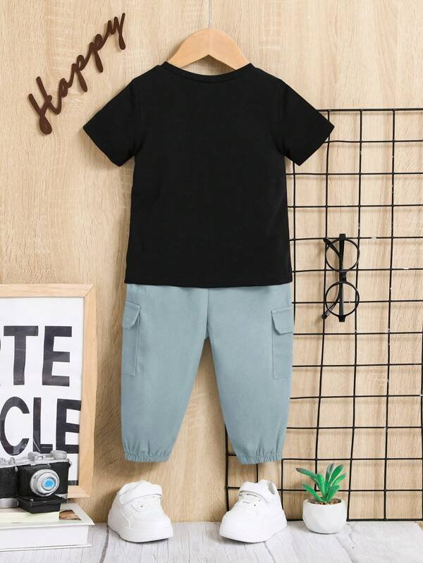 Beb? ni?o Camiseta con parche con bolsillo & Pantalones con bolsillo con solapa