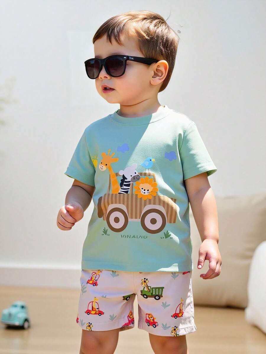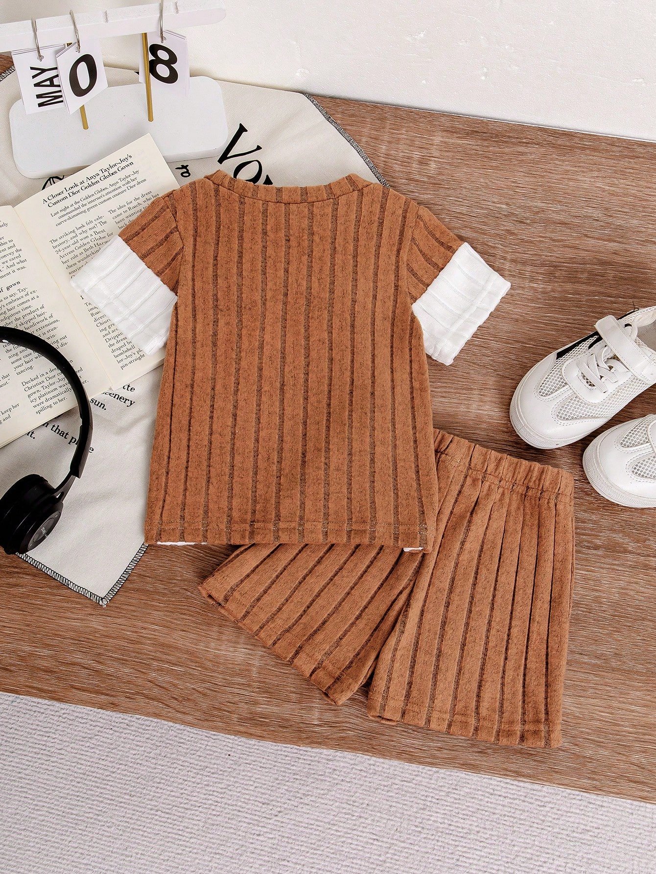 bebé niño con parte superior acanalada de color azul y blanco a juego con pantalones azules