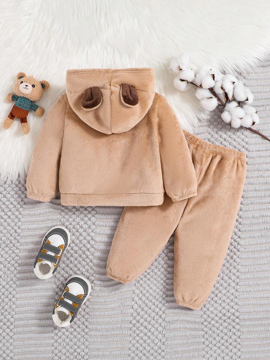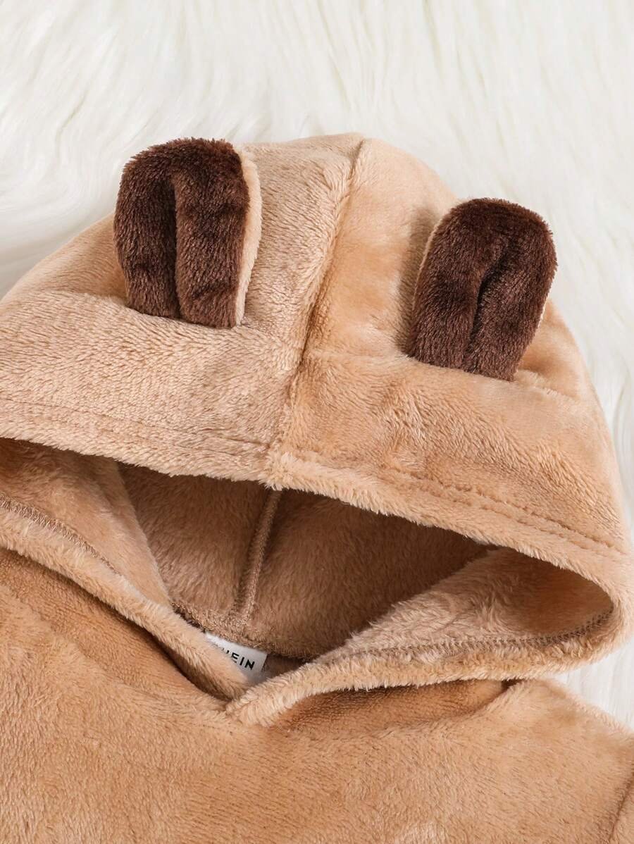 Beb? ni?o Pantalones con capucha con bolsillo de canguro con dise?o de oreja 3D de franela