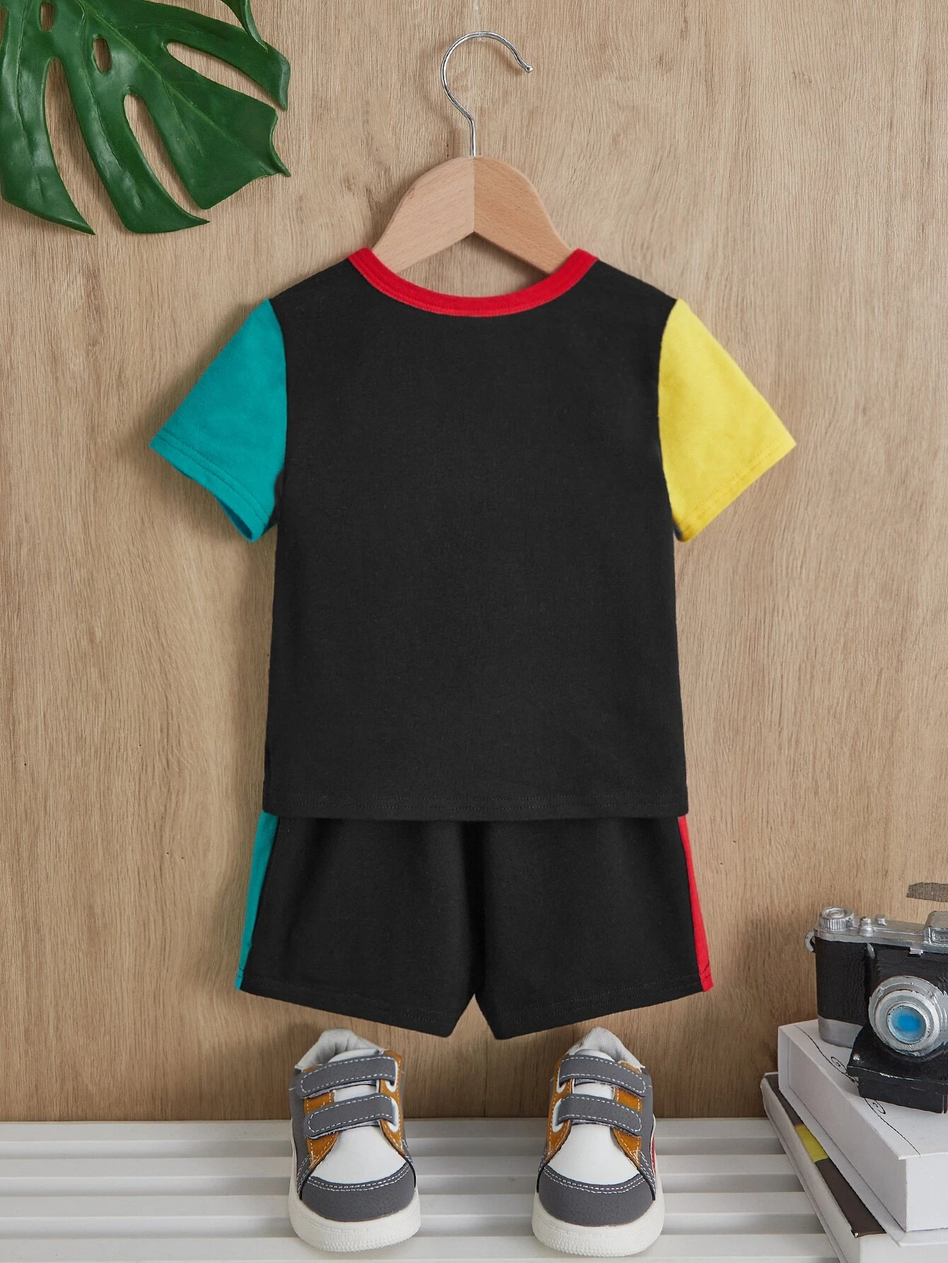 Beb? Shorts con camiseta con estampado de letra de color combinado