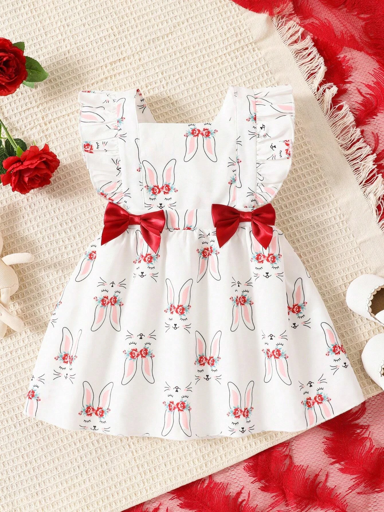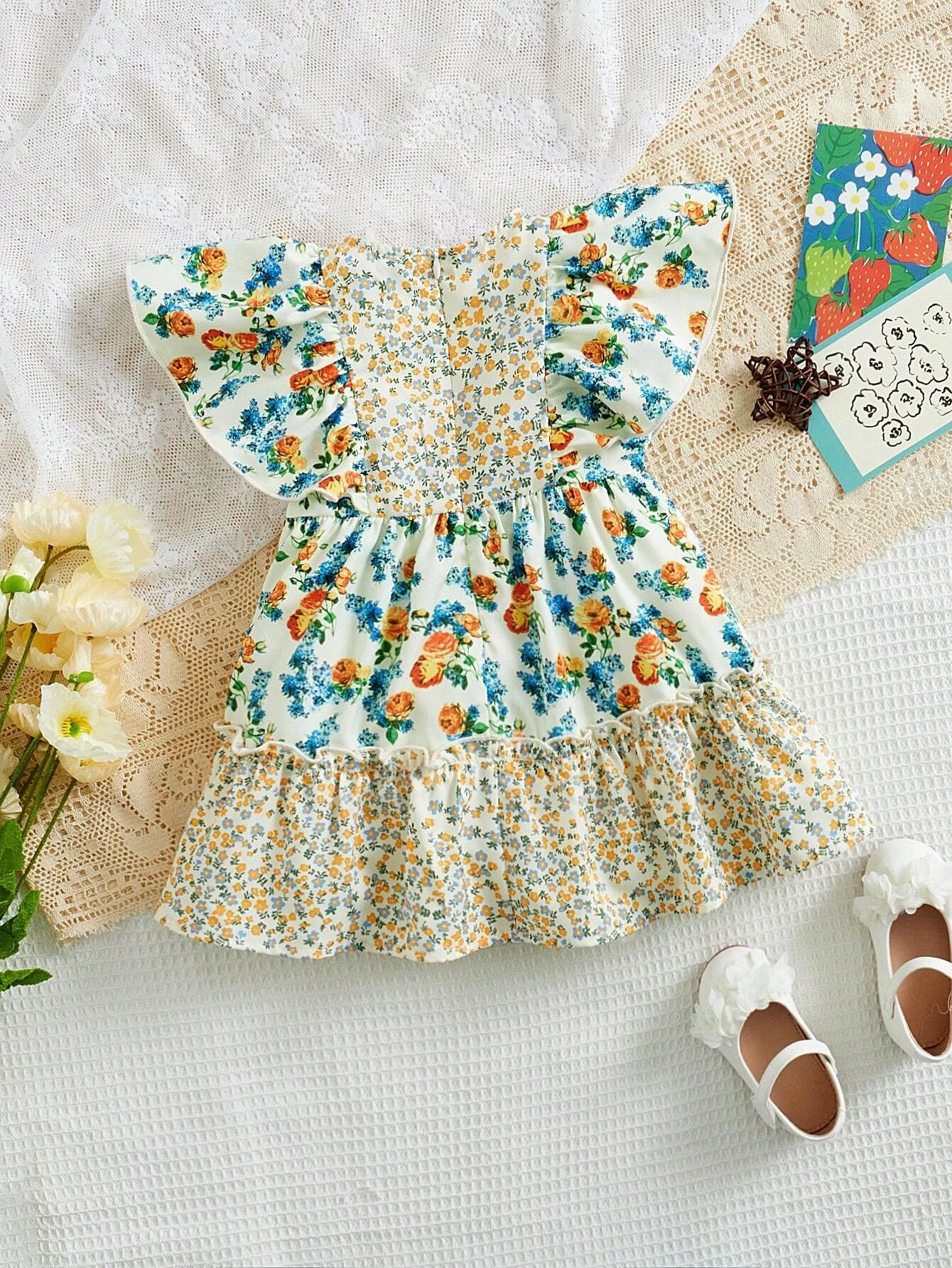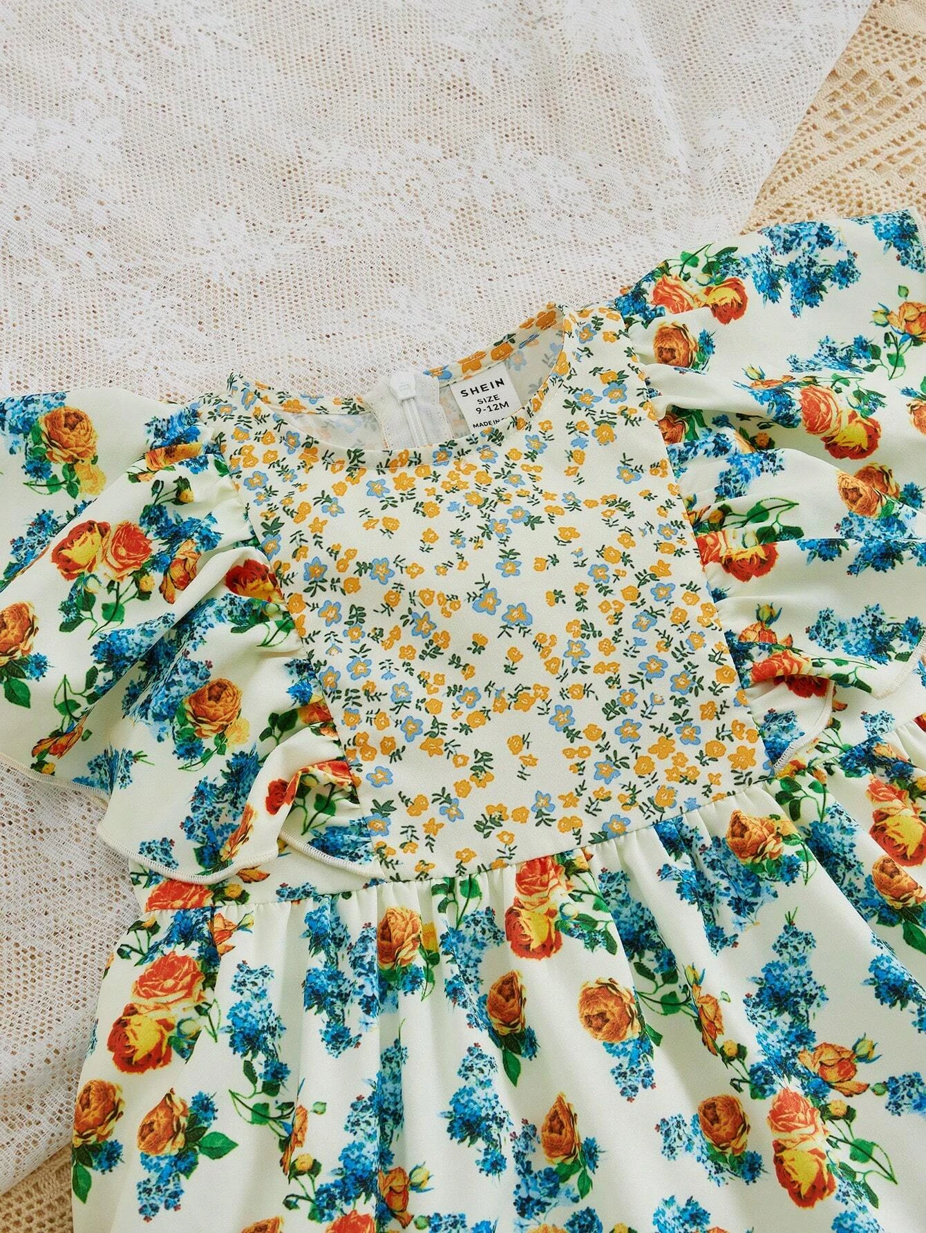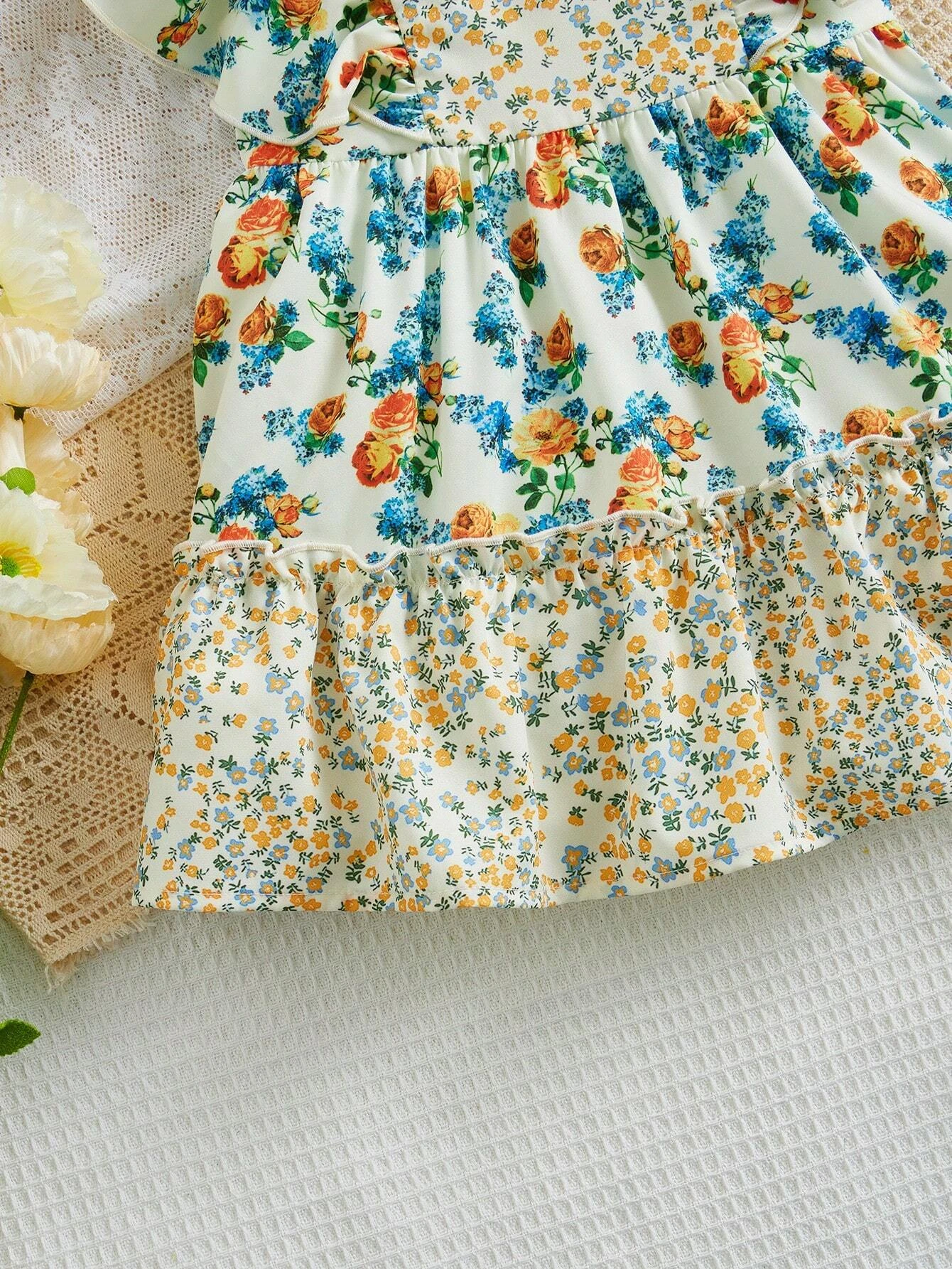 Beb? Vestido con estampado floral ribete con fruncido