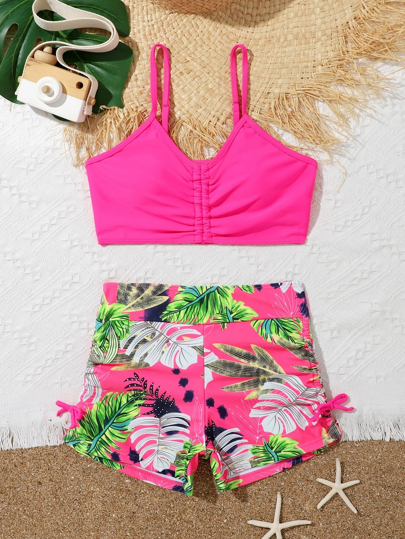 Bikini De Rayas Para Niñas Adolescentes Con Cuello Asimétrico Y Recortado