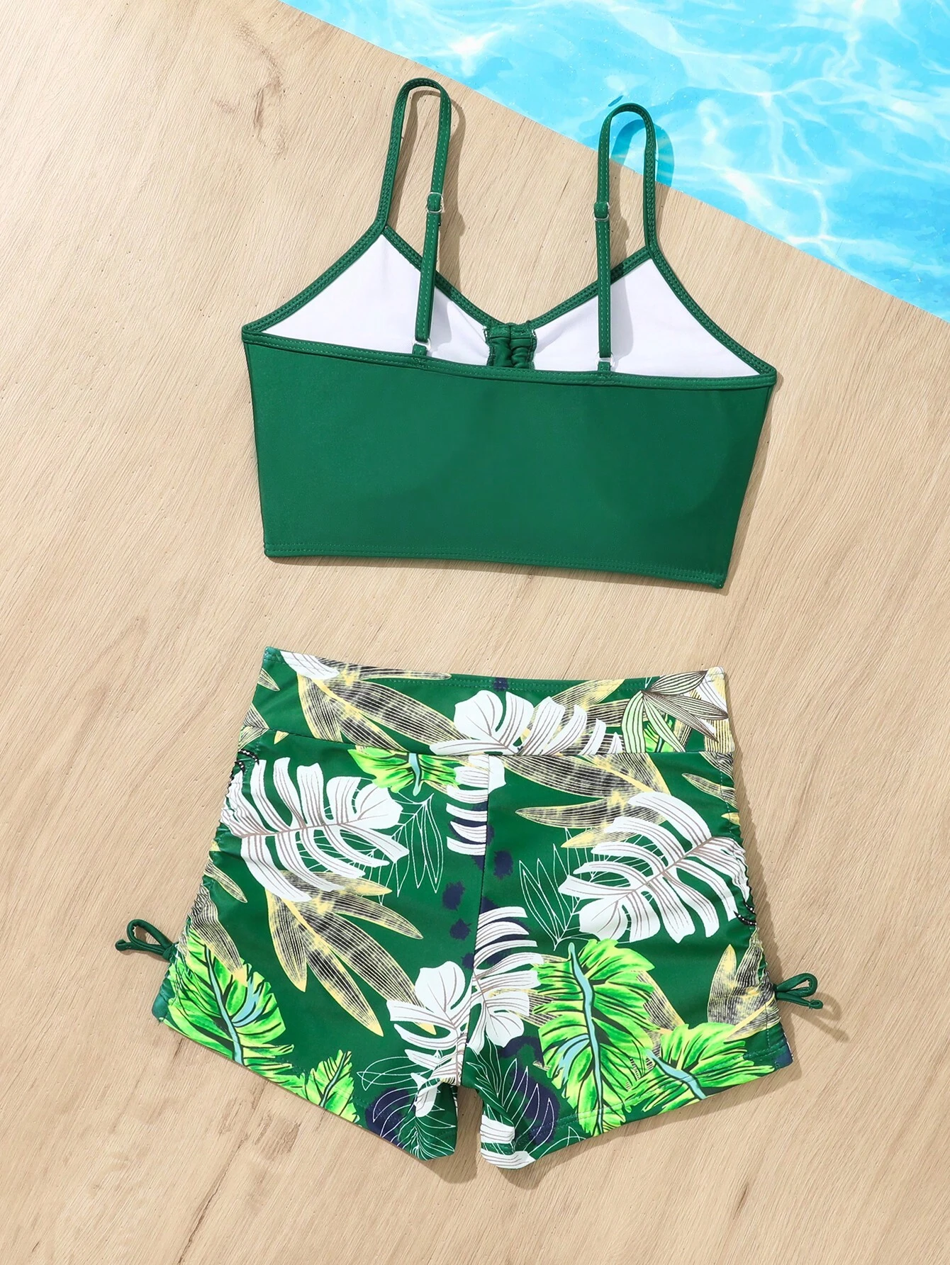 Bikini De Trajes De Ba?o Con Estampado Tropical Y Pliegues