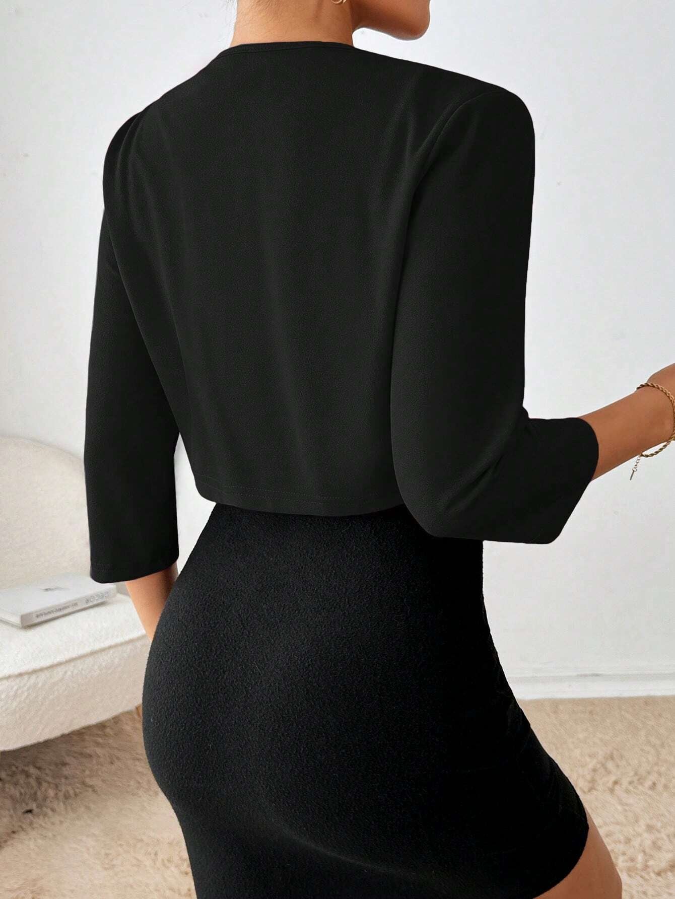 Blazer con pliegues de manga larga de unicolor
