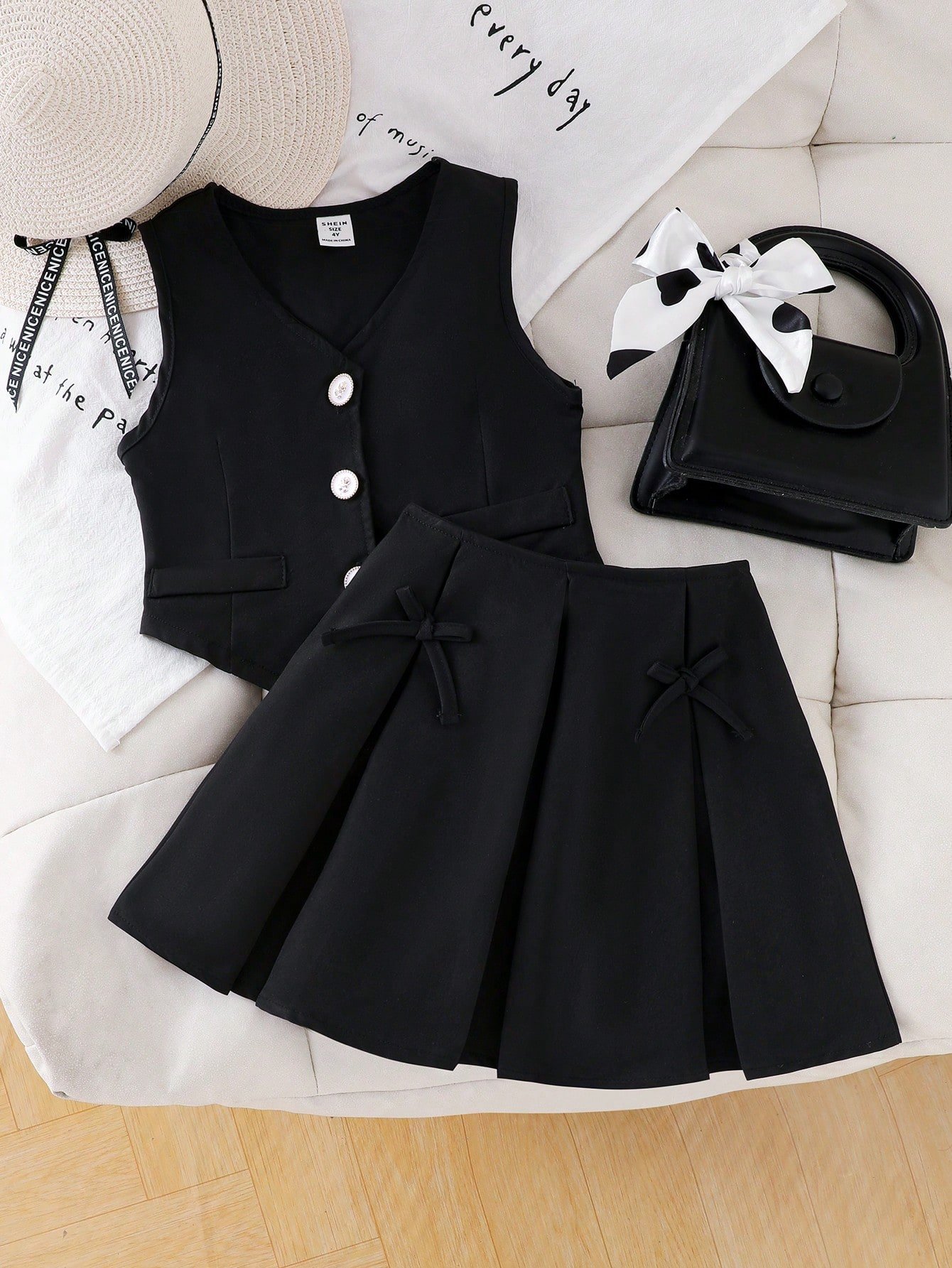 Blazer vintage, chaleco y falda plisada, diseño casual y elegante
