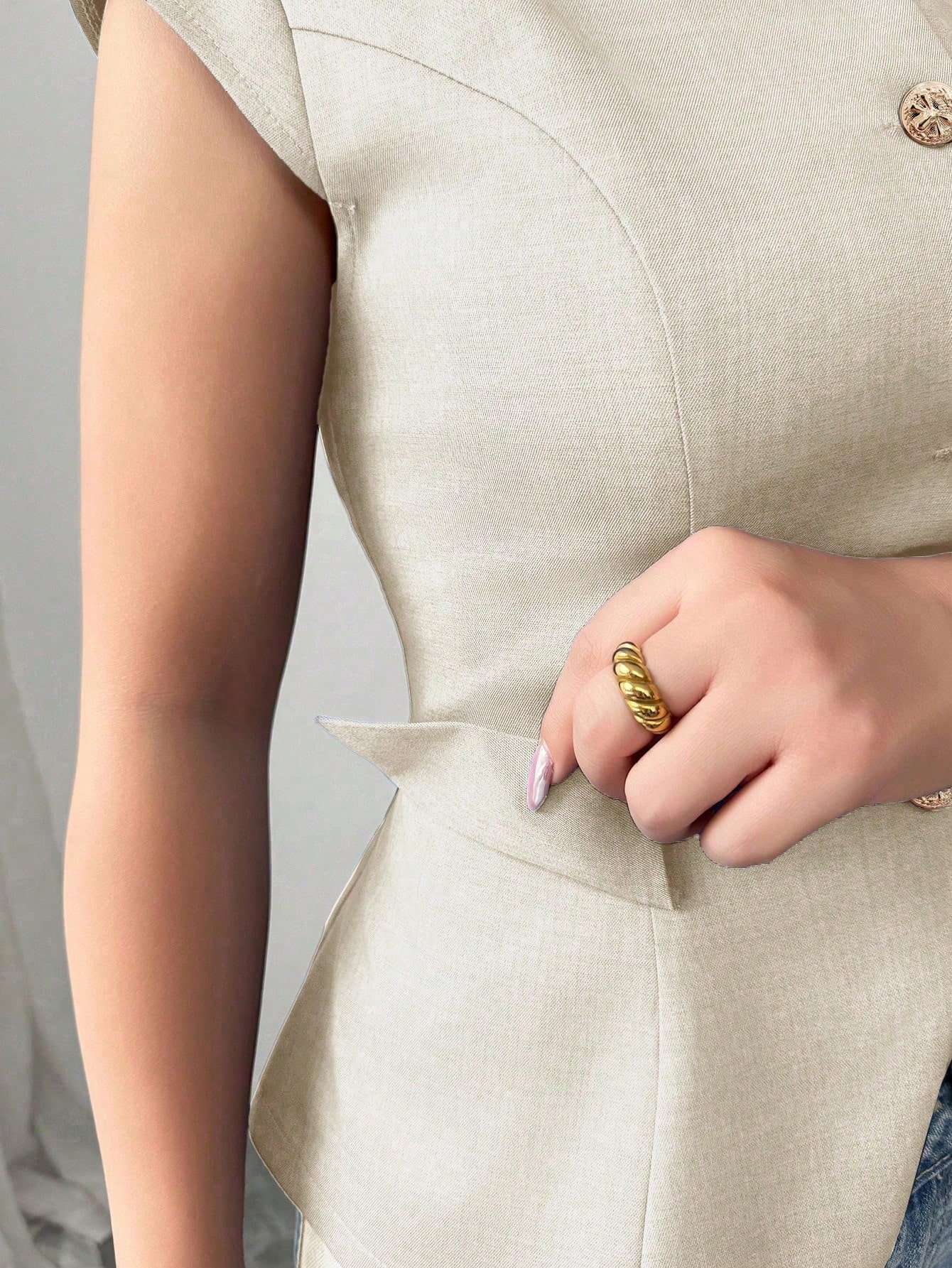 Blusa ajustada de mujer con cuello redondo y mangas cortas